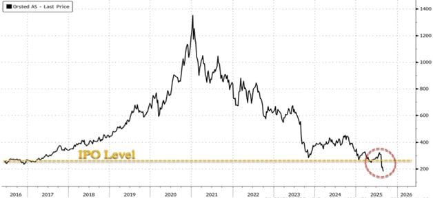 Wind company Ørsted A/S, the Danish multinational, debuted in the European stock market 9 years ago. With the renewable energy industry under pressure from the Trump administration, Orsted’s share price has seen its biggest ever declines.